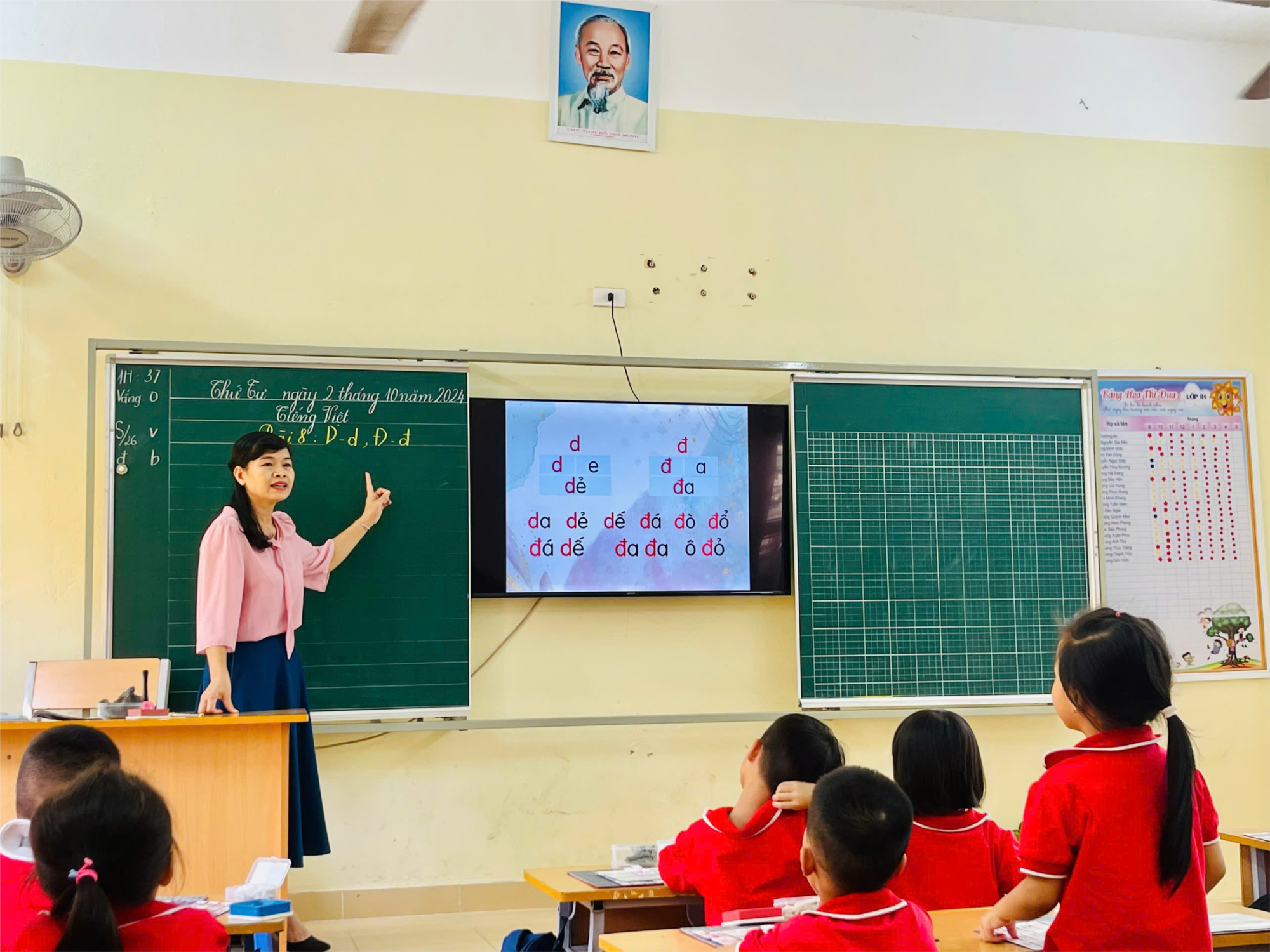 Thực hiện kế hoạch chuyên môn năm học 2024-2025 chiều nay 02/10 khối 1 thực hiện lên chuyên đề: Dạy học môn Tiếng Việt lớp 1 theo CTGDPT 2018. Tới dự chuyên đề có các đ/c trong BGH nhà trường và các đ/c GV . Cô giáo Nguyễn Thị Hương Lan cùng các em học sinh lớp 1 H thực hiện lên chuyên đề. Chuyên đề đã thể hiện đúng đặc trưng phân môn, phát huy năng lực tích cực sáng tạo của học sinh trong giờ học. Qua chuyên đề BGH cùng các đ/c GV thảo luận, thống nhất các nội dung chuyên môn. Buổi chuyên đề đã thành công tốt đẹp.
