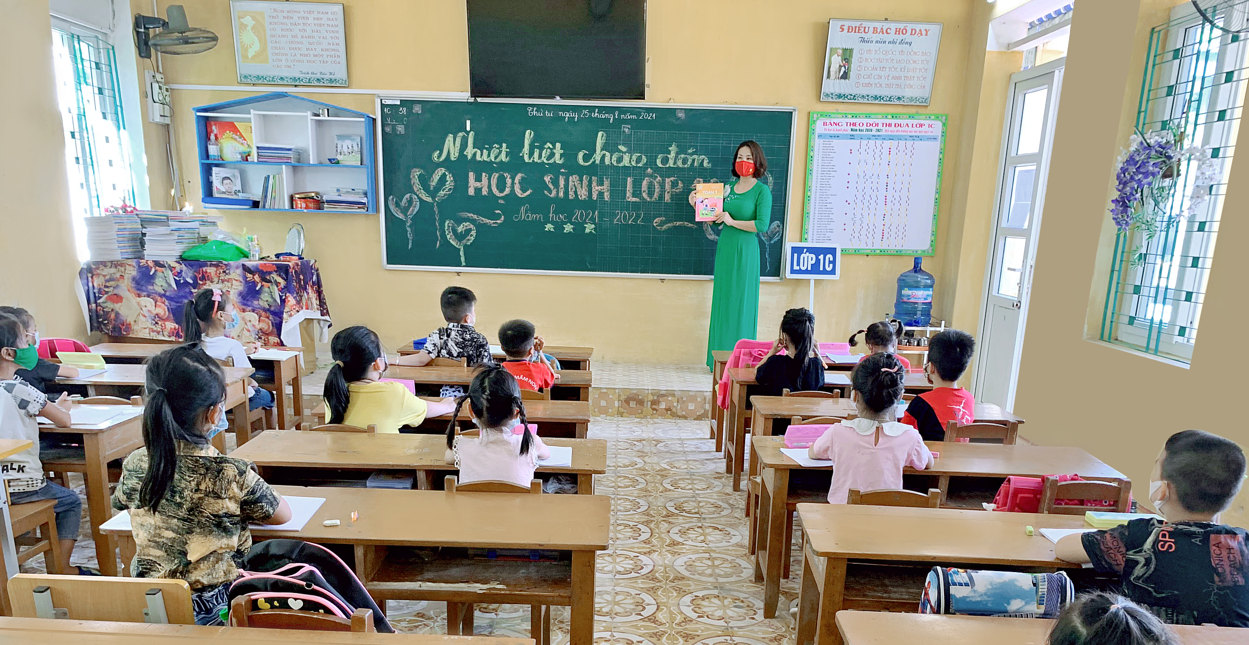 Thực hiện cv 5876/UBND-VX ngày 24/8/2021 của UBND Thành phố Hải Phòng về việc cho phép học sinh lớp 1 tựu trường. Thầy cô vui mừng chào đón các bạn HS lớp 1 bước vào buổi học đầu tiên, các bạn thực đúng các quy định phòng chống dịch của BCĐ phòng chống dịch nhà trường.