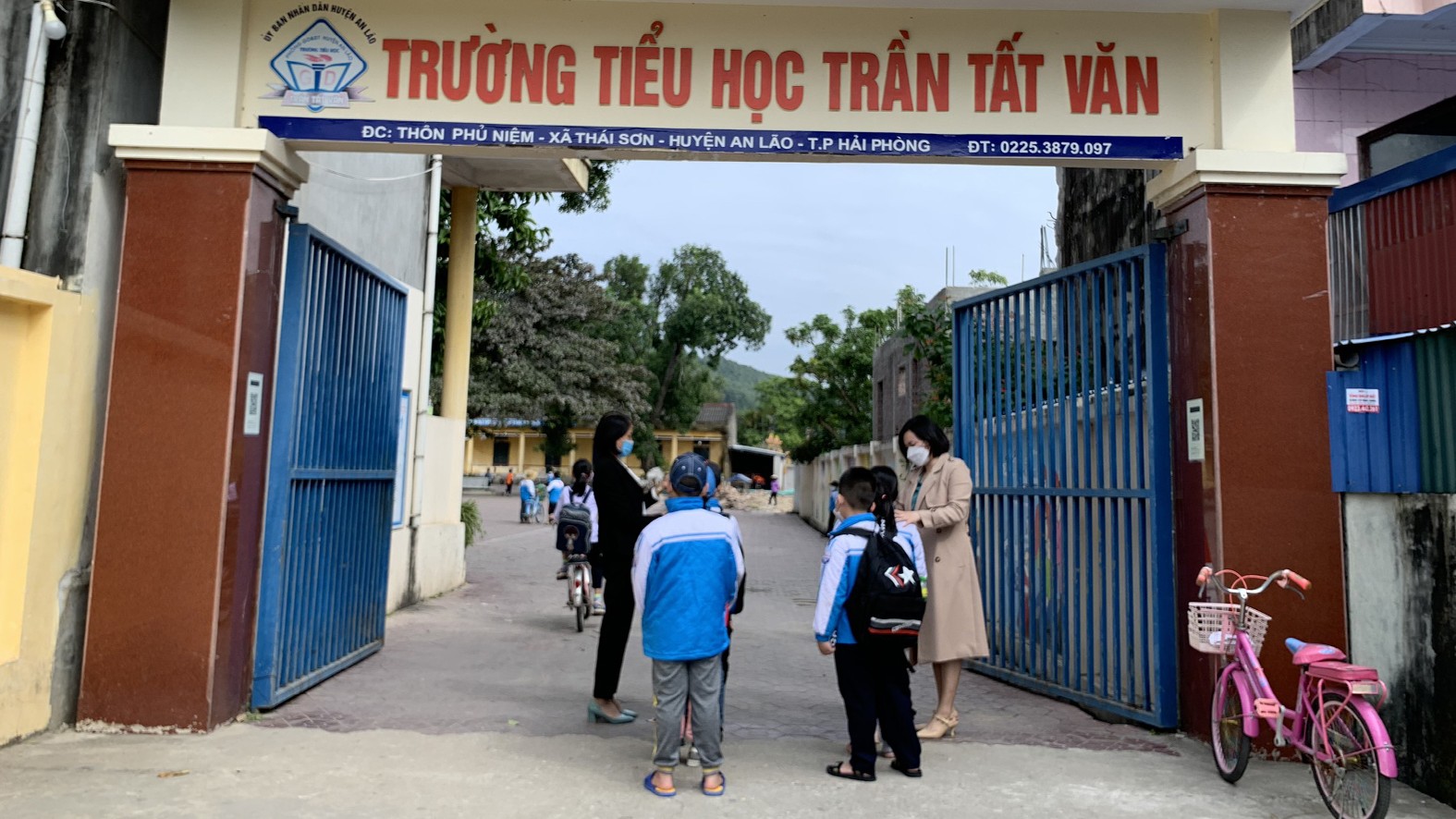 Sau 2 tuần học trực tuyến, nhà trường đã tổ chức phun khử khuẩn, quét dọn vệ sinh khuôn viên trong và ngoài lớp học, chuẩn bị những điều kiện tốt nhất. Để các em có một môi trường học tập đảm bảo an toàn, sạch đẹp. Ngày 23/11/2021 các em học sinh quay lại trường học tập trung, các thầy cô giáo đo thân nhiệt cho các em tại cổng trường và thực hiện nghiêm quy định phòng chống dịch bệnh Covid-19.