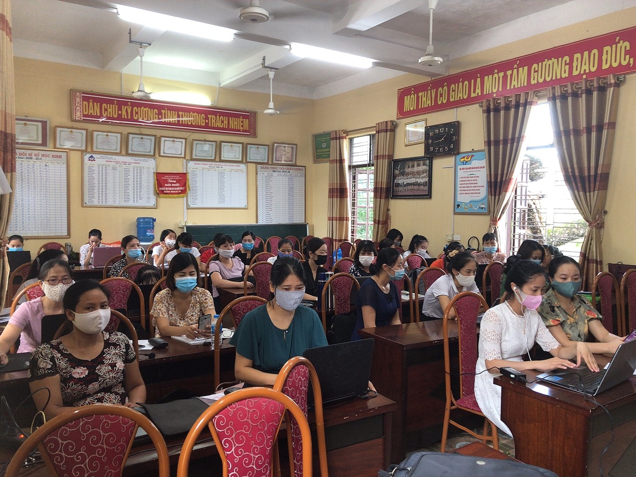 100% GV trong nhà trường tham gia buổi tập huấn dưới sự chỉ đạo của Đ/c Đỗ Thị Thư - PHT nhà trường. Bên cạnh đó nhà trường luôn thực hiện tốt công tác phòng chống Covid 19 và tuân thủ 5K.