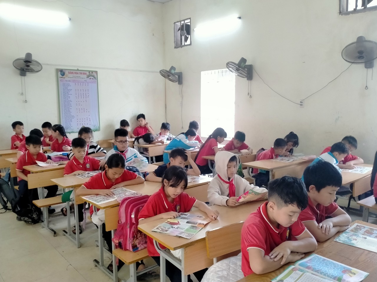 Hưởng ứng phong trào " Đọc và làm theo Báo Đội" ,15 phút đầu giờ sáng thứ Hai hàng tuần ,các em học sinh lớp 4B lại miệt mài bên những trang báo Đội . Ở đó các em học tập được những tấm gương người tốt ,việc tốt ; những hoạt động hay ,những bài viết bổ ích ,mở ra cho các em cả một thế giới mới qua trí tưởng tượng phong phú của người viết.