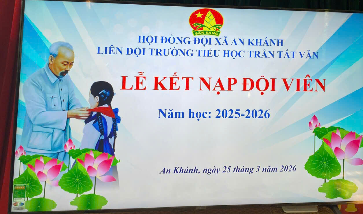 Ngày 25/3, Liên đội trường Tiểu học Trần Tất Văn đã long trọng tổ chức Lễ kết nạp Đội viên cho các em thiếu nhi khối 3 – đợt 1. Buổi lễ diễn ra trong không khí trang nghiêm, phấn khởi và đầy ý nghĩa.