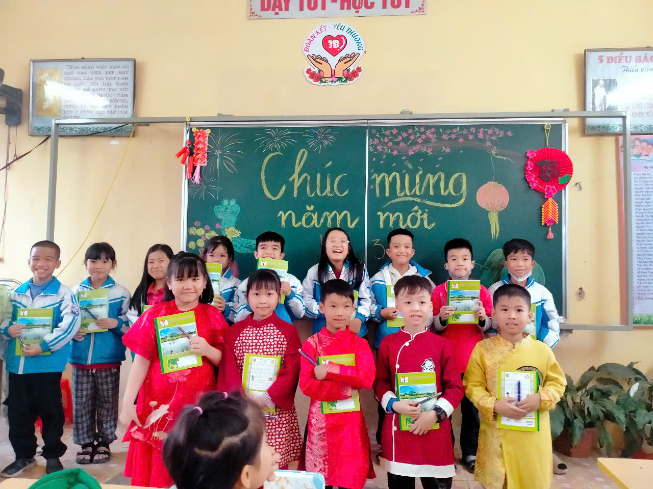 Hòa cùng không khí của cả nước đang tưng bừng chào đón Tết Nguyên đán – ngày Tết cổ truyền của dân tộc, các em học sinh lớp 3B háo hức đón chờ ngày Tết trên quê hương. Thông qua các giờ học Kĩ năng sống, các tiết Hoạt động trải nghiệm, các em đã có những hoạt động : trang trí lớp học, những trò chơi tìm hiểu về ý nghĩa của ngày Tết và một số phong tục của người dân Việt Nam trong mỗi dịp Tết đến xuân về.