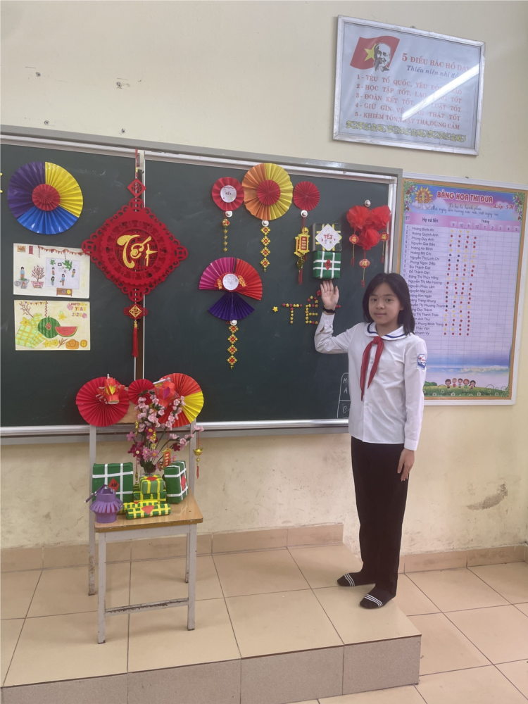 Tết! Tết! Tết! Tết đến rồi.” Không khí Tết đã tràn ngập trên khắp mọi miền Tổ quốc và cũng đã đến gõ cửa lớp 5H. Tết cổ truyền, một dịp vô cùng ý nghĩa với người dân Việt Nam. Vì thế mà “Dù đi đâu, ai cũng nhớ về chung vui bên gia đình.” Tết không chỉ là dịp để đoàn tụ, sum vầy mà còn là dịp để con cháu tỏ lòng thành kính với ông bà tổ tiên, là dịp để mọi người gửi nhau những lời chúc tốt đẹp nhất.