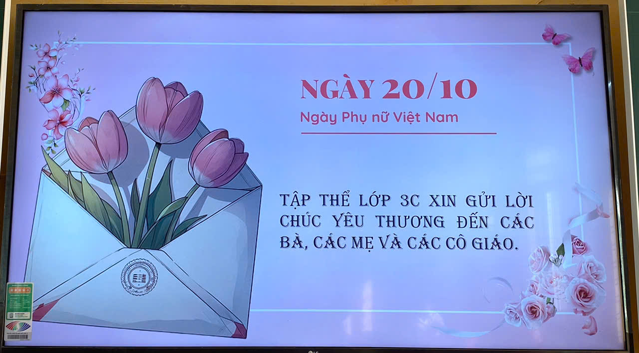 Trong suốt chiều dài lịch sử đất nước, hình ảnh người phụ nữ Việt Nam với tám chữ vàng “Anh hùng - Bất khuất - Trung hậu - Đảm đang” đã trở thành một biểu tượng cao đẹp. Hướng tới kỷ niệm ngày thành lập Hội liên hiệp Phụ nữ Việt Nam ((20/10/1930 – 20/10/2024). Học sinh lớp 3C đã cùng nhau trang trí những tấm thiệp hoa, viết gửi các bà, các mẹ của mình lời nhắn yêu thương và lời cảm ơn sâu sắc nhất.