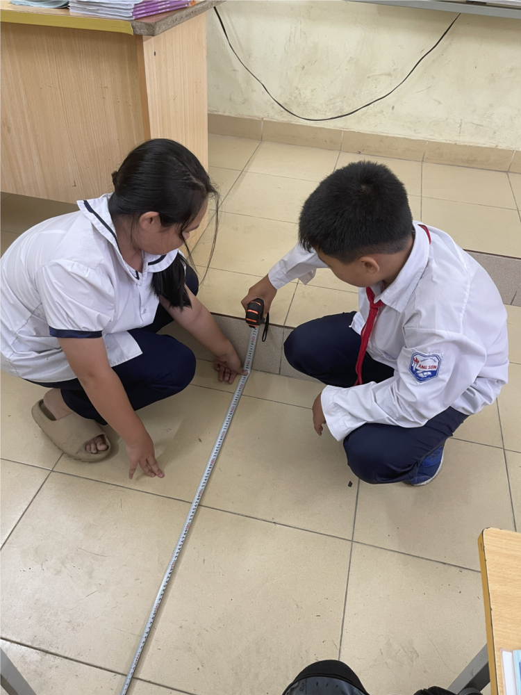 Để chuẩn bị cho tiết học “THỰC HÀNH VÀ TRẢI NGHIỆM VỚI MỘT SỐ ĐƠN VỊ ĐO ĐẠI LƯỢNG” các em đã thành lập các nhóm học tập, tự thảo luận, phân công nhiệm vụ cho các thành viên trong nhóm như: chuẩn bị thước dây, cử bạn đo, cử thư kí ghi chép các số liệu, ... Trong tiết học, các em đã thực hành đo và tính diện tích của bảng lớp, bàn học, cửa ra vào, diện tích phòng học và số viên gạch để lát nên phòng học của mình, ,...