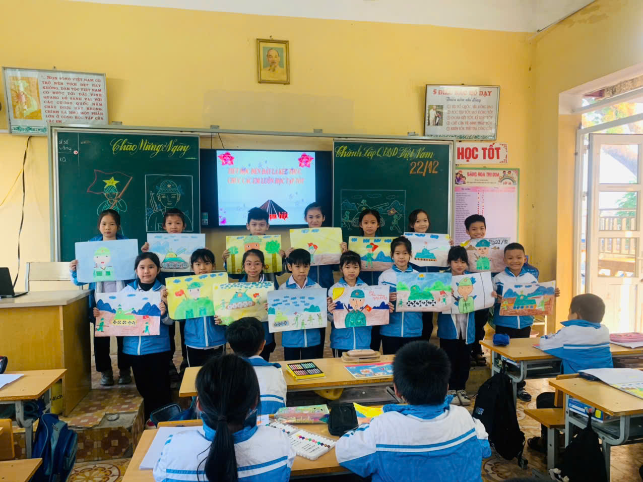 Cùng hoà chung với không khí kỷ niệm ngày thành lập quân đội nhân dân Việt Nam (22/12) cô, trò lớp 3A kính chúc các bác, các cô chú bộ đội luôn mạnh khỏe, thật nhiều niềm vui và hoàn thành xuất sắc mọi nhiệm vụ được giao.