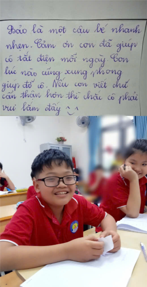 Trong buổi sinh hoạt lớp ngày hôm nay, các em học sinh đã được nhận một " mật thư" nho nhỏ, những lá thư không cần tem nhưng lại chứa đựng một kho báu cảm xúc vô giá. Nội dung bức thư không phải là lời phê bình mà là một lời khen, ghi lại một hành động mà các em làm tốt hay những lời động viên chân thành, đúng lúc Khoảnh khắc nhận thư, những đôi mắt trẻ thơ sáng lên vì bất ngờ và hạnh phúc. Các em khi đọc những dòng nhắn nhủ của cô lại tủm tỉm cười. Nụ cười ấy như xoa dịu, là niềm tự hào len lỏi vào tâm hồn các em. Bởi lời khen đúng lúc không chỉ là động lực mà còn là ánh sáng thắp lên sự tự tin. Những "mật thư " ấy không chỉ là giấy trắng mực đen mà còn là những viên gạch vững chắc xây nên nhân cách và trở thành kỉ niệm đẹp đẽ trong hành trình lớn lên của các em.